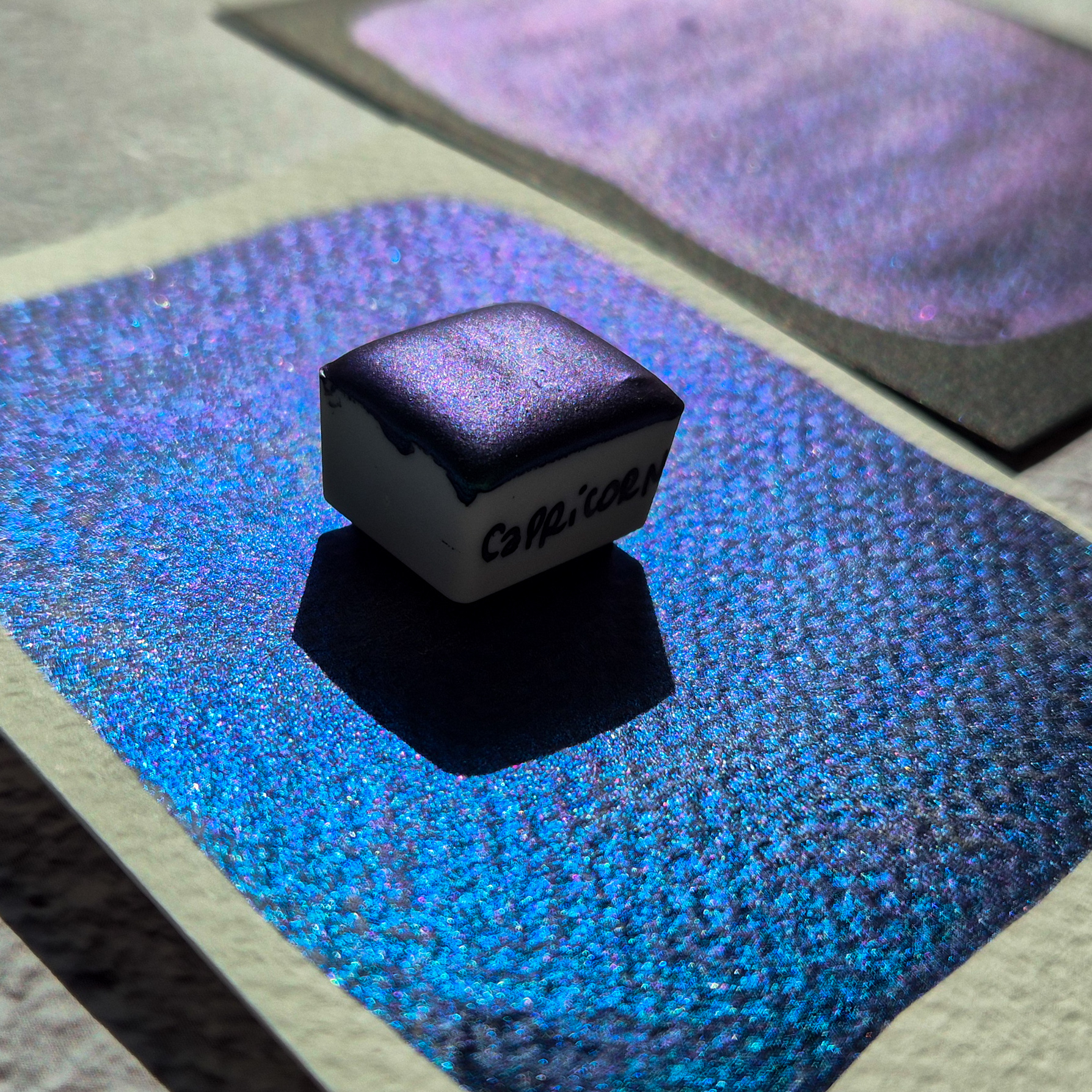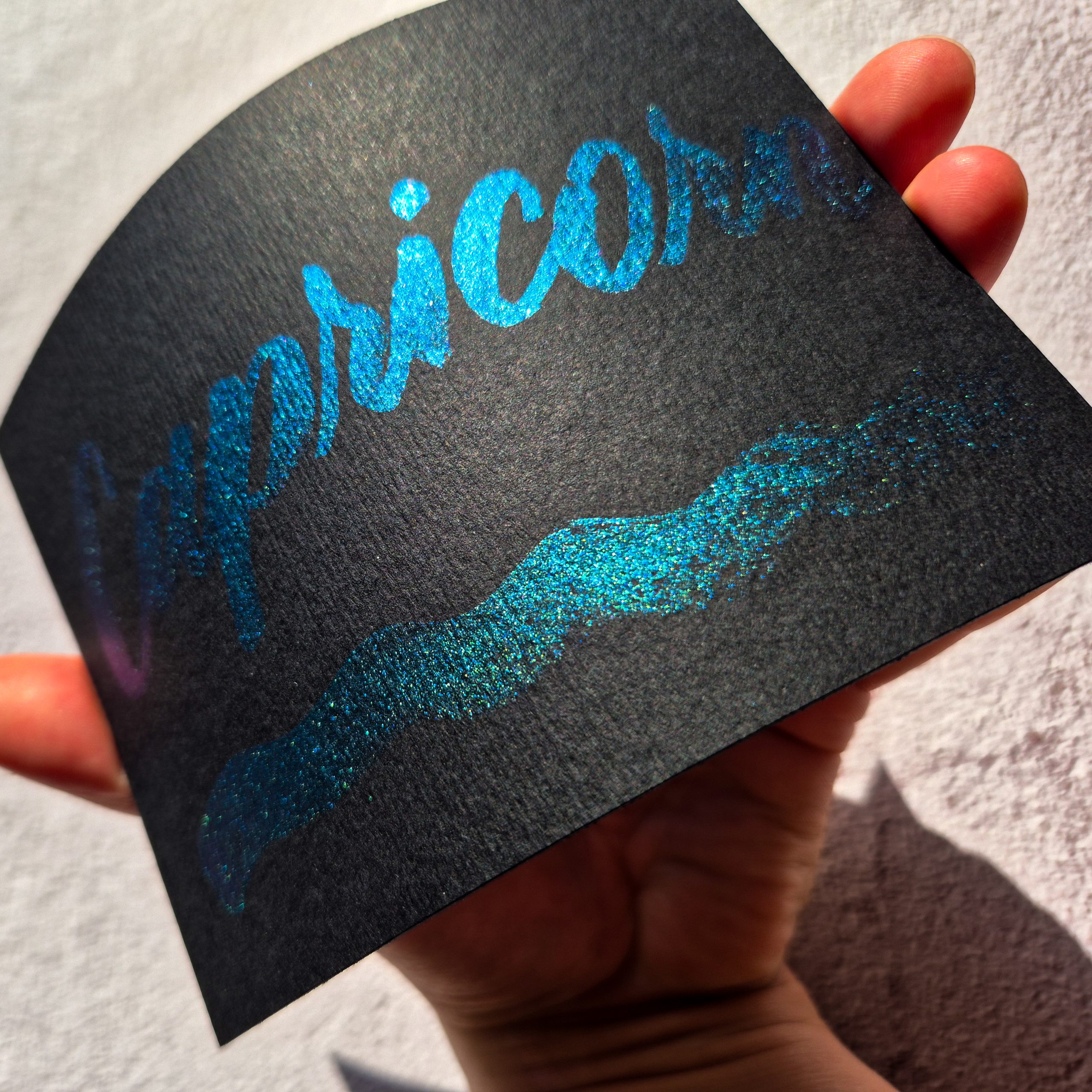 Ten kolor najlepiej prezentuje się na ciemnym/czarnym papierze; Zdjęcia nie oddają pełnej magii tego koloru – efekt przejścia przez wszystkie barwy jeszcze lepiej prezentuje się na żywo! Eksperymentuj z kolorem papieru i podkładu, sprawdź kolor farby pod różnym kątem i w różnym świetle – zachwycisz się tym efektem!