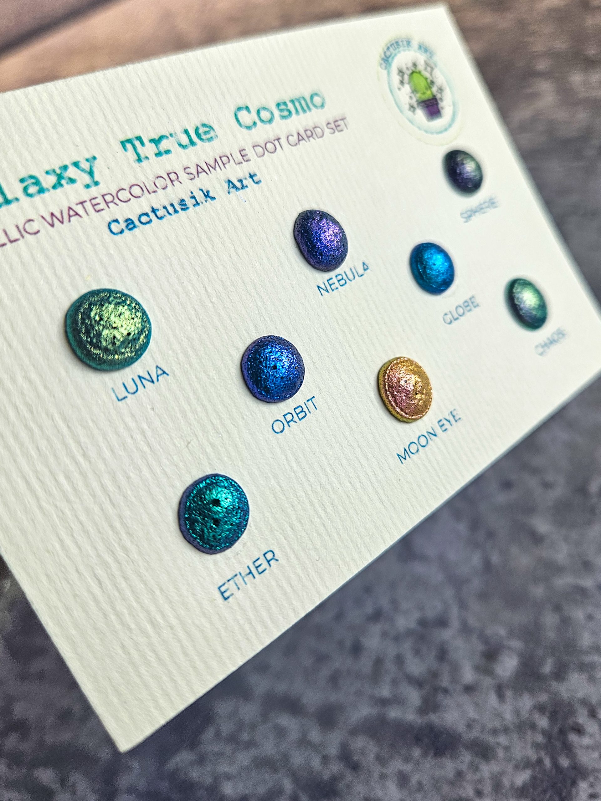 Farby z serii Galaxy True Cosmo dostępne są w zestawach (po 8 farby) w formie farb MIDI, MINI i Half Pan (opcjonalnie z puszką lub bez).