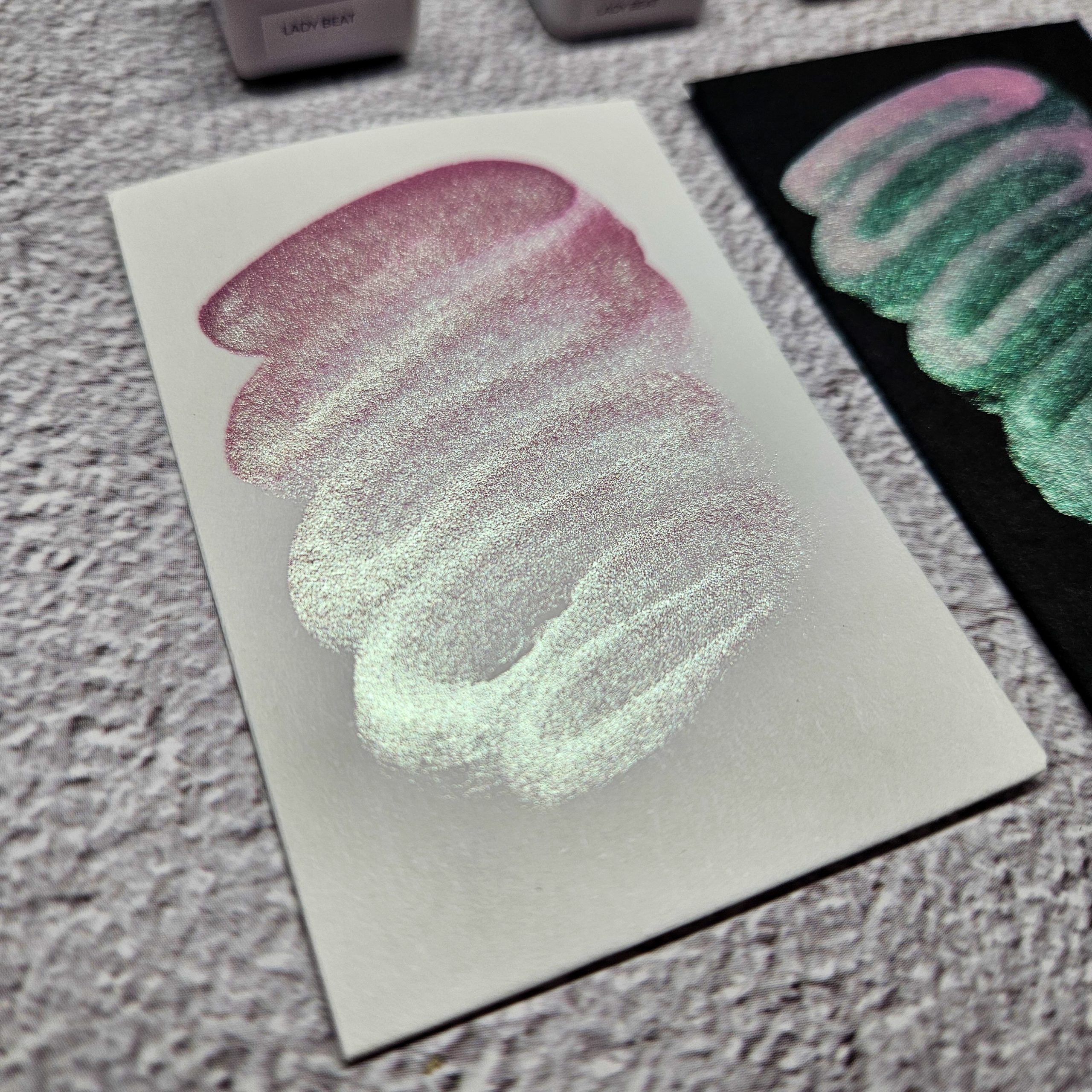 Nieco większe drobinki, ciekawy efekt na ciemnym papierze.