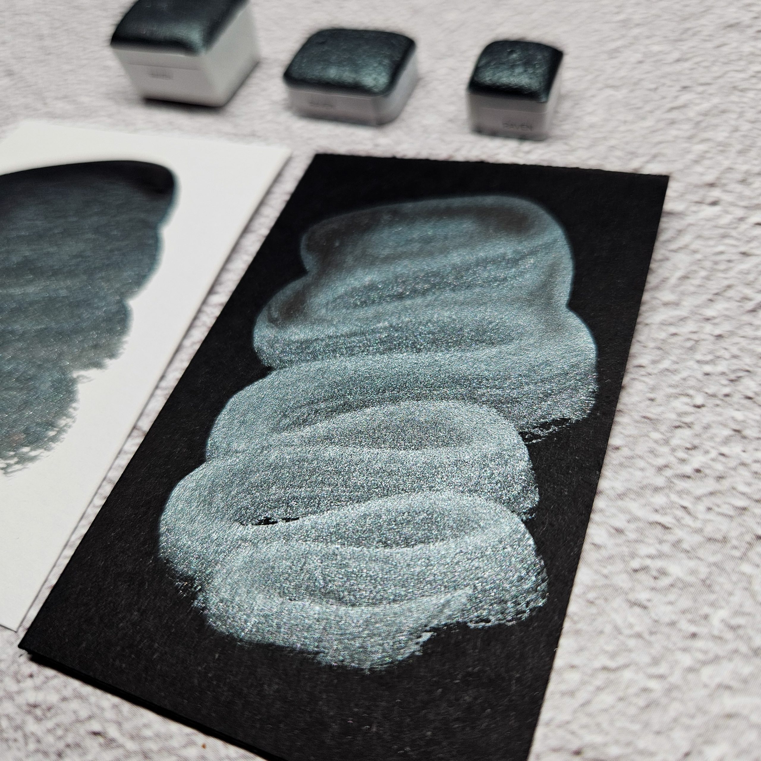 Intensywnie grafitowa, prawie czarna baza z chłodnym grafitowym, delikatnym błyskiem