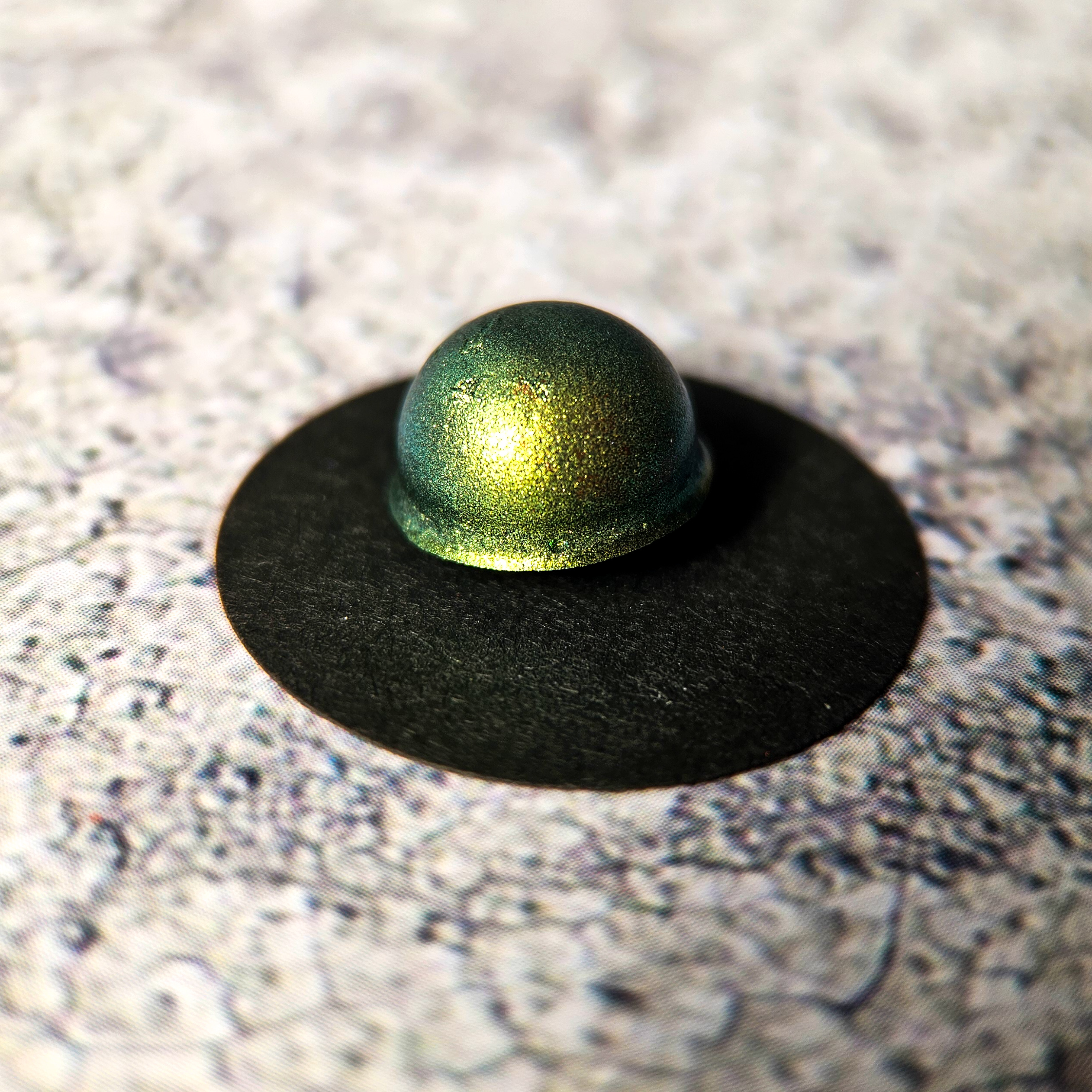 Drobinki zmieniające kolor: szaroniebieski – zielony – złoty